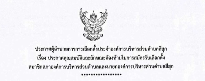 ประกาศคุณสมบัติและลักษณะต้องห้ามในการสมัครรับเลือกตั้งนายก และ สมาชิก อบต.