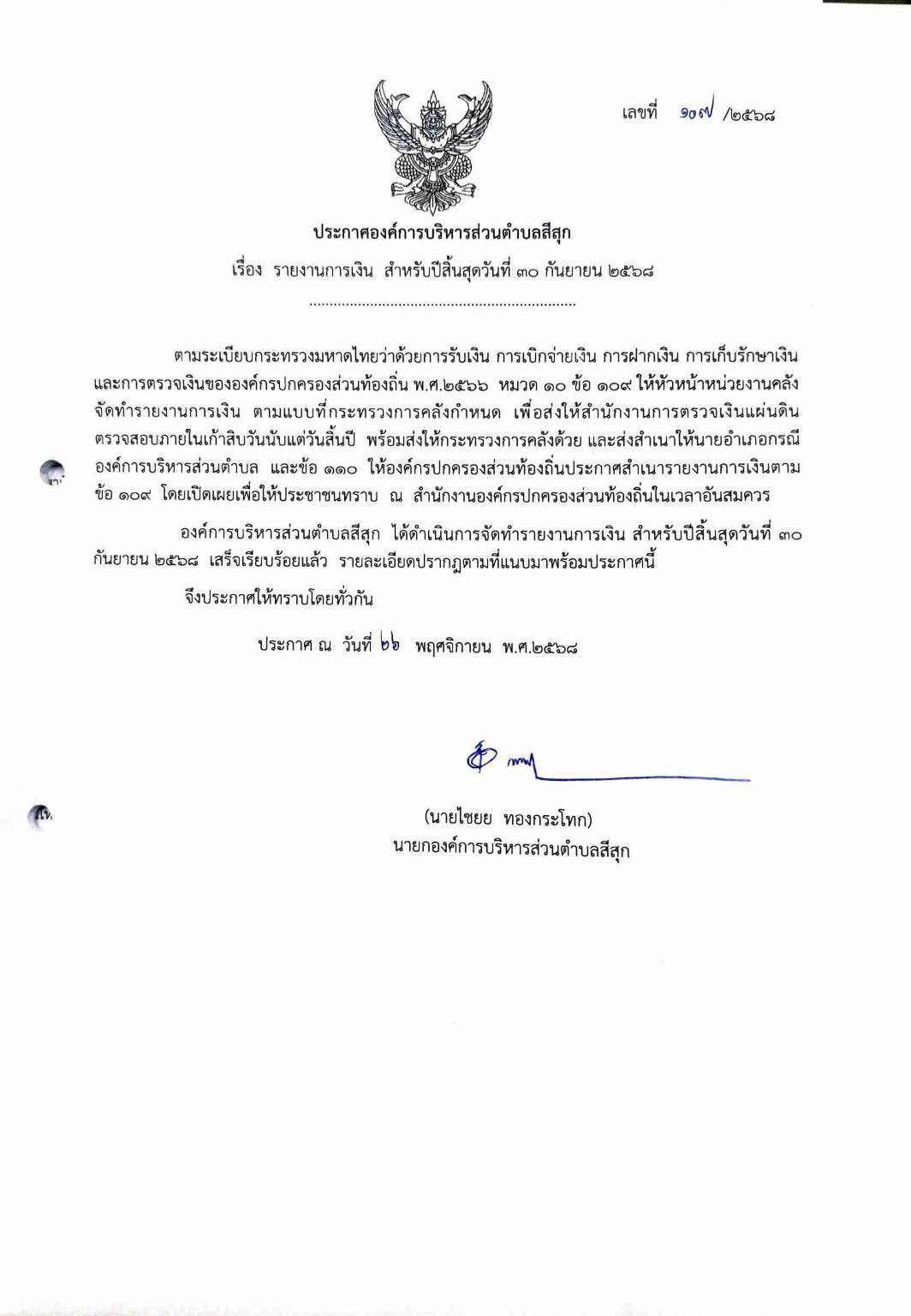 ประกาศรายงานเงินสะสม ณ วันสิ้นเดือน กันยายน 2568