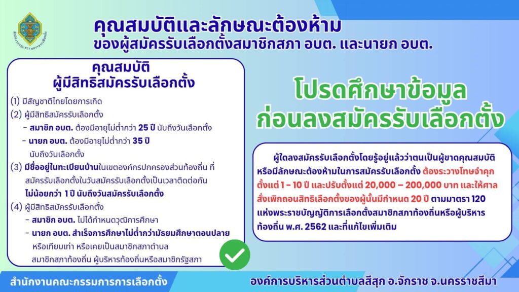 ปฏิทินเลือกตั้ง อบต.2569 และคุณสมบัติผู้สมัครเลือกตั้ง นายก.อบต. และ สมาชิกอบต.